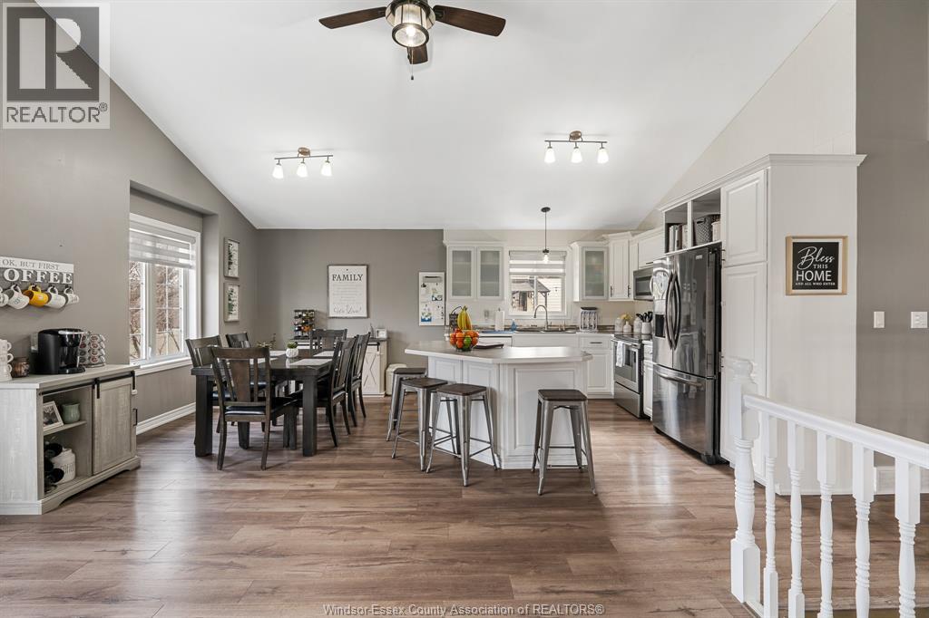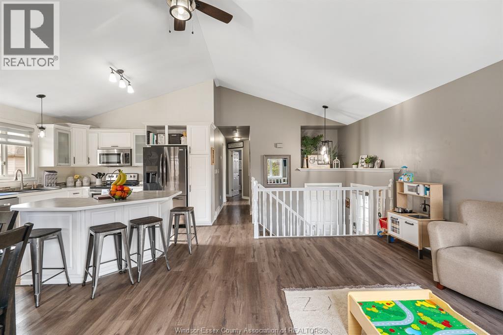 Welcome to this well-maintained raised ranch in Cottam, situated in a great neighbourhood on a quiet street. The main floor offers a bright living room and an open-concept kitchen with vaulted ceilings and plenty of natural light. Three bedrooms are located on the main level, including a spacious primary bedroom with cheater access to the main bath. The finished lower level features a cozy family room with a gas fireplace, an additional bedroom and 3pc bath, ideal for guests or extended family. Step outside to enjoy the generous backyard, recently levelled and completed with new sod in 2023, perfect for summer entertaining. (id:4555)